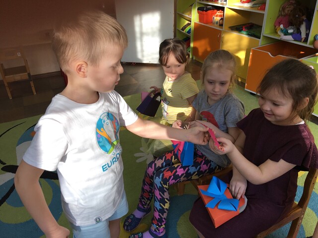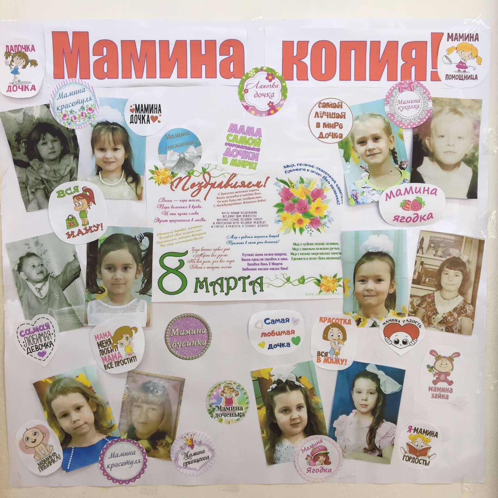 В группе № 16 мальчики поздравили девочек с праздником 8 марта, подарили им подарки и ребята все вместе сделали коллаж девочек и их мам - "Мамина копия"